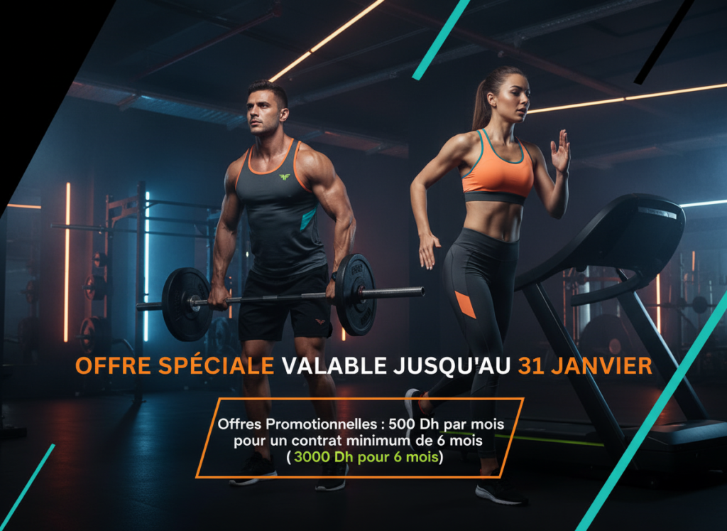 1200 DH par mois – Accès illimité à tous nos espaces : cardio-libre, machines, workout et sauna pour transformer votre routine fitness.