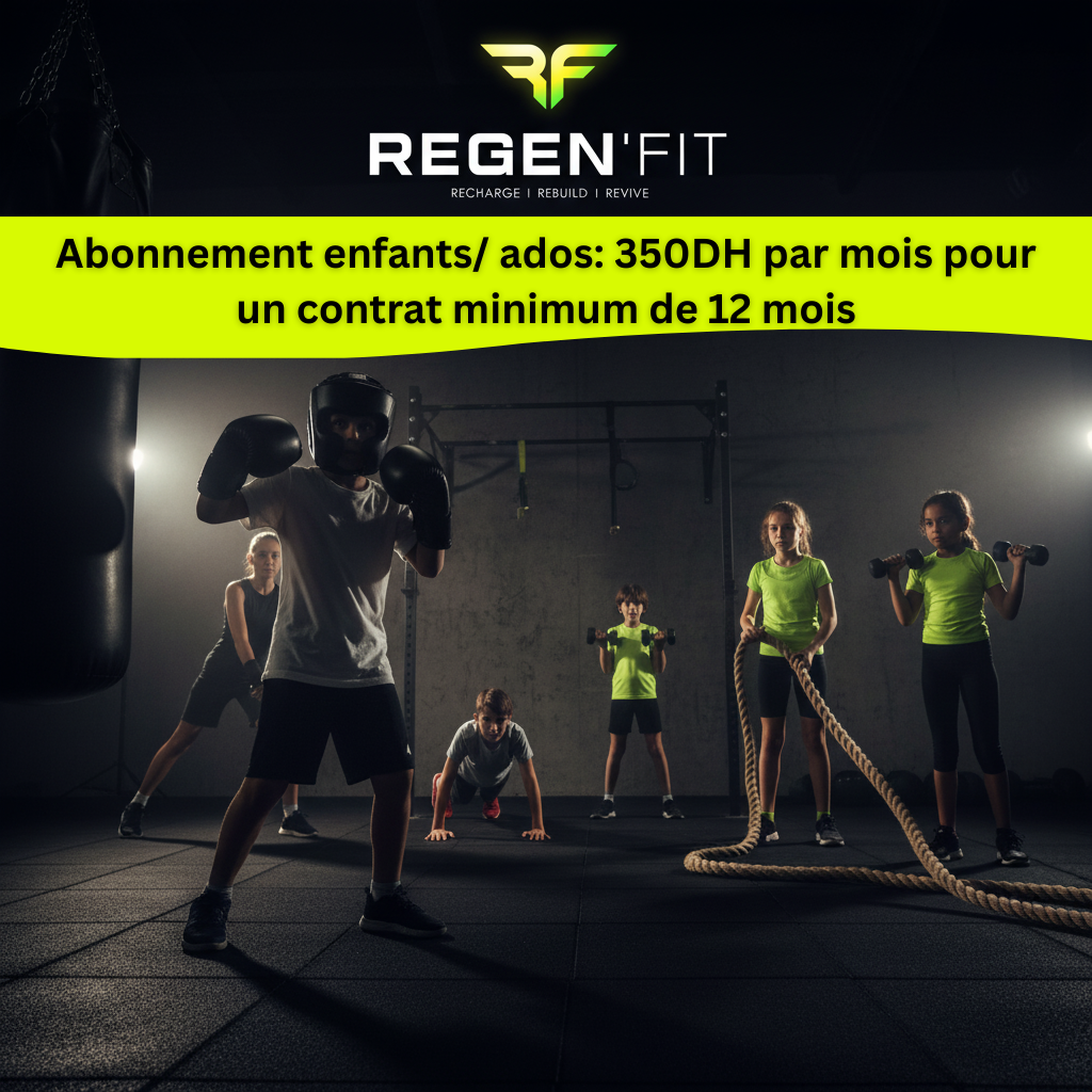 Située au cœur de l’Hivernage à Marrakech, Regen’fit est votre salle de sport premium équipée de cinq espaces spécialisés : cardio-libre, machines, workout et sauna. Avec des équipements modernes et une équipe d’entraîneurs certifiés, nous vous accompagnons vers vos objectifs dans un environnement professionnel et motivant. Rejoignez-nous et transformez votre corps dès aujourd’hui !